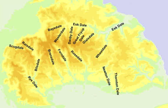 This map shows the main (either largest or best known) dales of the North York Moors.