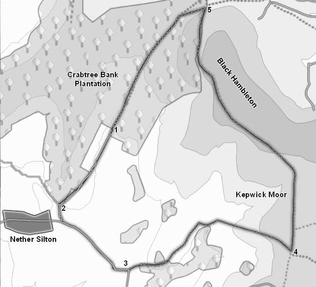 We start at the Forestry Commission Car Park in Burton's Plantation (head east from Nether Silton, turn left just outside the village then right onto Moor Lane, and follow this lane all the way to its end).