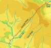 Follow this path across the heather. After just over half a mile the path dips down to cross over Bawderis Beck. Once over the back, the path climbs straight up towards an isolated cottage (currently being renovated). The path passes between the cottage and an older ruined cottage and then continues on through the heather. Follow this path until it reaches the Hawnby-Osmotherley road.